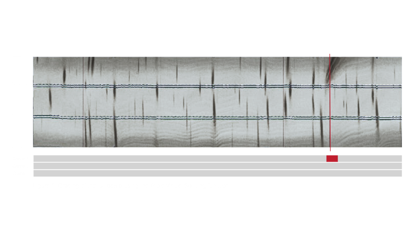 Durch die Analyse des Festigkeitsprofils über die gesamte Länge des Brettes können wir Defekte identifizieren und entfernen, die seine Qualität mindern. Dadurch wird die Qualität des Brettes verbessert, und die Ausbeute optimiert.