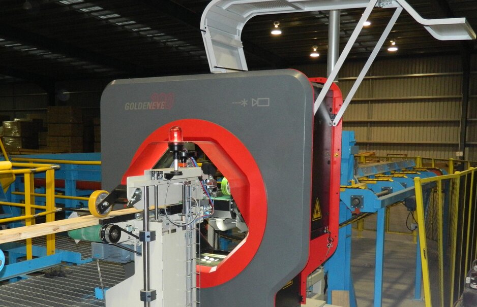 In this challenge for modernization, a brand new Multi-Sensor Quality Scanner Goldeneye 300 has been installed in April 2015 at the Te Kuiti site of Tregoweth Ltd. The scanner application provides automatic quality grading of the lamellas by scanning all 4 sides in longitudinal feeding, in a single cross cut line from Dimter. The application is a full profile scanning and grading of raw lamellas for components and finger jointing, which are produced using sawn timber from pruned radiata logs. The in feed and out feed unit of the scanner is provided by System TM. The boards are dry and planed and ideally possess clear wood sections. Kevin Tregoweth, managing director, states with satisfaction: ”We are impressed with the grade recovery increase provided by the Goldeneye scanner and re-ripping application”.