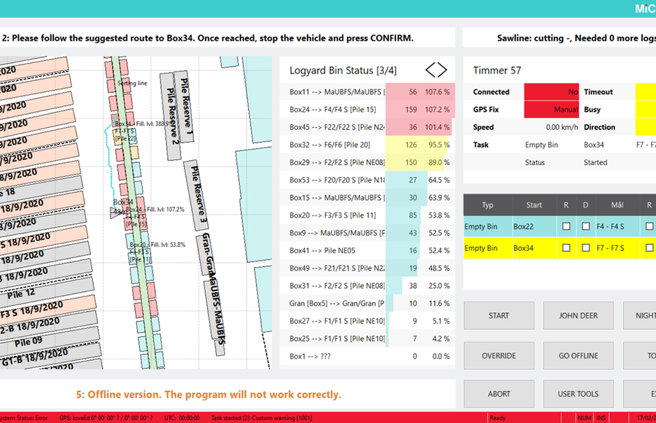 "Our sawmill runs non-stop, 24 hours a day. Especially at night or in adverse weather conditions, the wheel loader drivers were more prone to mistakes. Mistakes occurred at the sorting boxes or the wrong log piles were approached for intermediate storage of the logs. MiCROTEC's Winlog GPS system can locate our six handling machines with an accuracy of up to 20cm. Incorrect movements are almost completely eliminated," says Zimnickas, describing the advantages of the system. In addition to the aspect of precise positioning, the software tool also allows all relevant data to be stored for each log. Geometry, wood type or quality can be stored together with information on the date of receipt or supplier in a special sorting sequence that is individual for each log. With the help of all relevant data, the sorting process at the logyard can be optimally controlled and the individual sorting boxes can be filled according to customer-specific selection criteria. In addition, the routes of the wheel loaders can be analyzed and optimized in real time. In addition to saving time, this also saves valuable fuel costs.