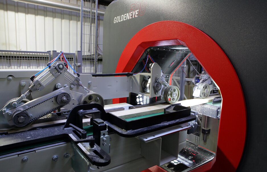 Marley Eternit made the investment ahead of the introduction of new British Standards at their site in Lincolnshire. The company installed a Goldeneye camera and laser scanner, as well as upgraded the handling line, before the introduction of BS5534:2014. The Goldeneye 500 scans wooden battens 30 times faster than the human eye – which allows the company to increase production of its market-leading JB-Red battens. Even at a speed of 280 meters per minute, the Goldeneye scans timber to ensure every batten meets the requirements and complies with the standard.