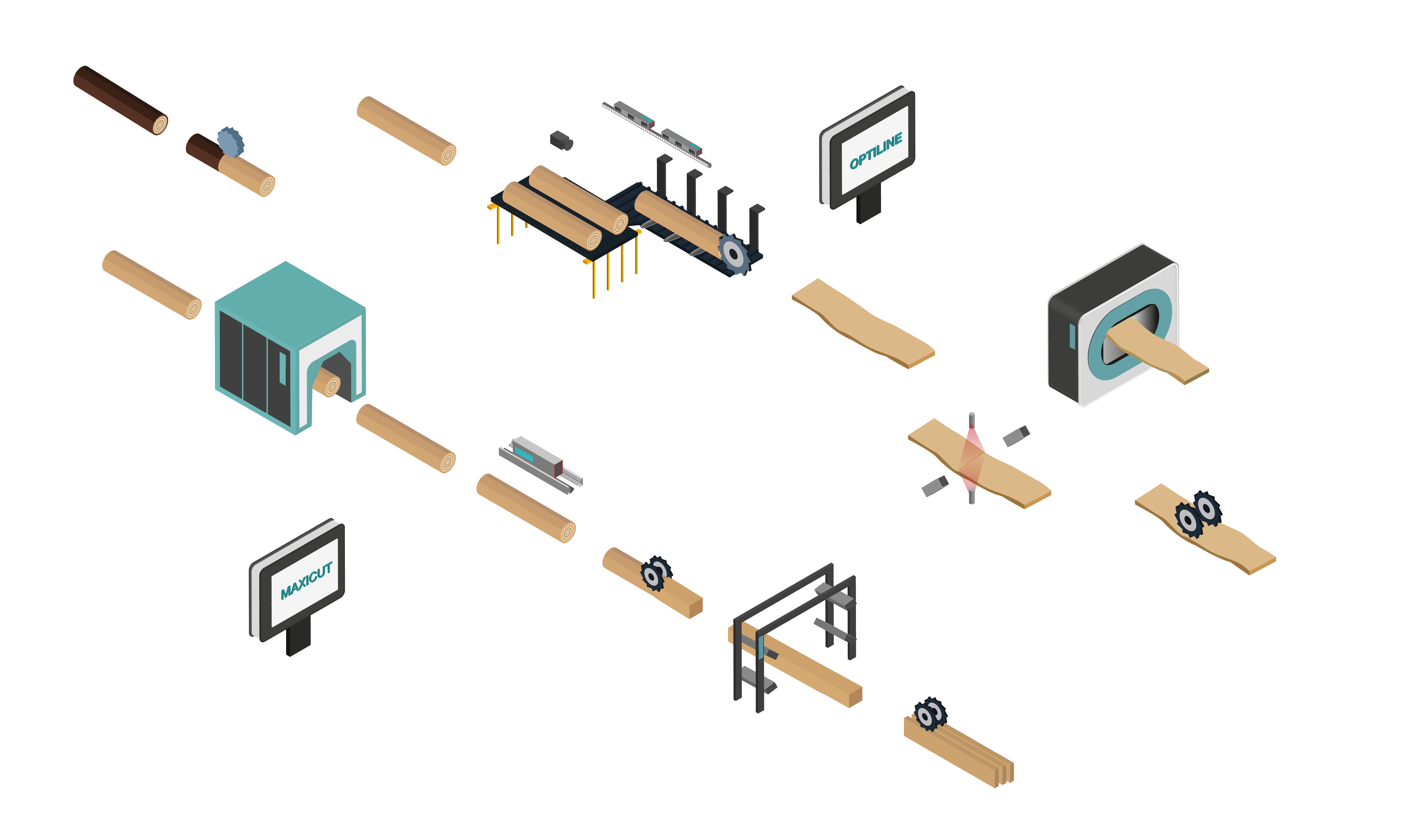 Dans la scierie, les billons sont transformés en bois de sciage grâce à une série d'opérations de coupe et de triage. Nos scanners de forme et de classement ainsi que nos logiciels d’optimisation de coupe pour les grumes permettent d’exploiter au maximum les bois. Connaissez-vous le scanner stéréoscopique Logeye Stereo ? Pouvez-vous imaginer l'amélioration que vous obtiendrez rien qu’en contrôlant la rotation des billons?