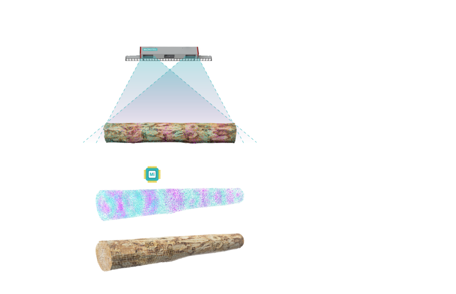 Logeye Stereo è l'unico scanner al mondo in grado di fornire una scansione completa a 360° di un tronco mentre questo rotola sul carrello, sul headrig, sull'end dogger o da un trasportatore trasversale a uno lineare. Poiché la scansione avviene durante il trasferimento in posizione, il tronco è completamente ottimizzato e pronto per essere segato immediatamente.