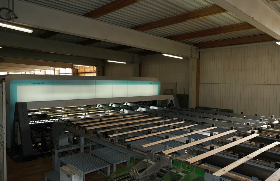 Direttamente prima della linea di segagione, i tronchi passano attraverso il Logeye 302, uno scanner di qualità multisensore con impronta digitale. Dotato di tecnologia a raggi X, telecamere multisensore e altri sensori, il Logeye esegue una misurazione 3D del tronco e ne determina nuovamente il profilo di densità. Grazie ai profili di densità dei tronchi, ognuno dei quali è unico come un'impronta digitale, ogni tronco viene riconosciuto e ruotato in base alla sua resa ottimale prima del taglio. "Stiamo ottimizzando il programma di taglio per ogni singolo tronco", sottolinea Gerard. Oltre agli scanner MiCROTEC, ciò è possibile con l'aiuto di una linea di profilatura modernizzata di Linck, progettata per adattarsi a ogni singolo tronco, consentendo persino un processo di taglio completamente non ordinato.