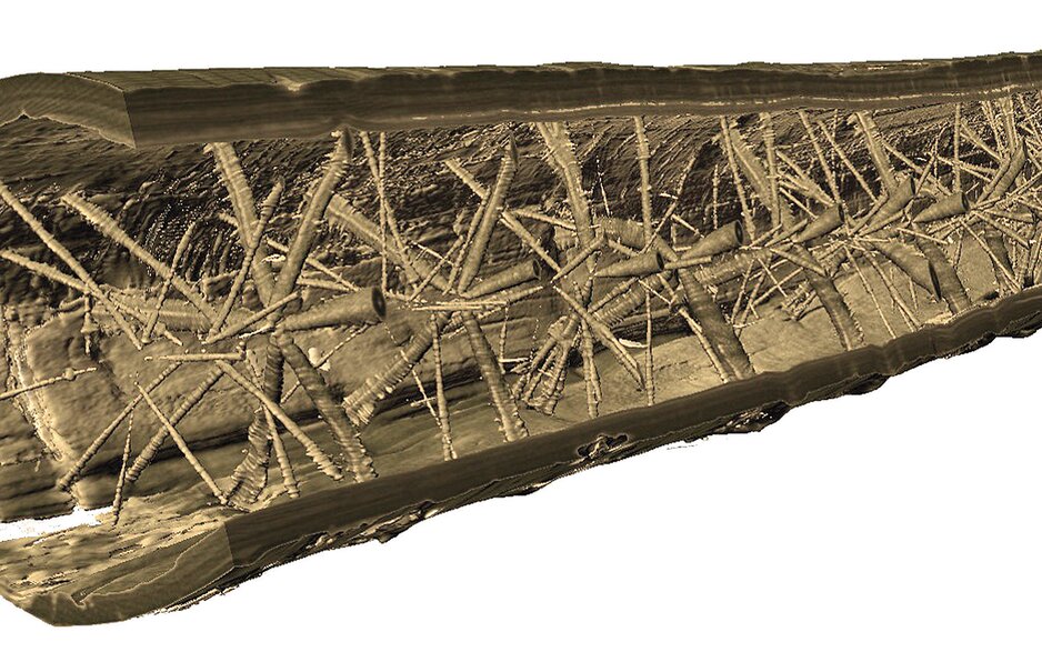 Subito dopo l'ingresso dei tronchi, i tronchi lunghi e corti vengono portati nel CT Log con velocità di avanzamento fino a 120 m/min. La tecnologia di tomografia computerizzata integrata nella macchina consente la ricostruzione digitale dell'intera vita interna dei tronchi. In particolare, viene creato un profilo di densità tridimensionale completo di ogni tronco, che mostra principalmente la dimensione, la posizione e la condizione dei nodi. Inoltre, il sistema rileva la presenza di nodi marci, crepe, sacche di resina o venature a spirale. "Questo ci permette di prevedere con precisione la qualità delle tavole e la loro posizione anche prima del taglio e di regolare di conseguenza il programma di segagione per ogni tronco. In sostanza, questo significa che non stiamo più accedendo ai singoli tronchi per il taglio, ma al nostro deposito di legname virtuale all'interno dei tronchi", spiega Gerard e aggiunge che questo ha cambiato l'approccio all'intero processo produttivo. "Ora sappiamo esattamente quali tronchi utilizzare per quali prodotti e quali volumi dei vari assortimenti possiamo produrre ogni anno. Questo non solo aumenta il valore del legno usato, ma facilita anche la logistica per i mercati".