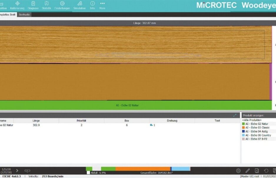 For a good year now, Woodeye has been operating under the name MiCROTEC, but the name Woodeye has been retained and now covers all further processing products for hardwood. The Styrian manufacturer has also relied on Woodeye technology for 26 years when it comes to grading the top lamellae of two-strip and three-strip parquet. "Due to the possibility of performing optical sorting with artificial intelligence, we decided to replace the scanner in this area," Kaufmann continues.
